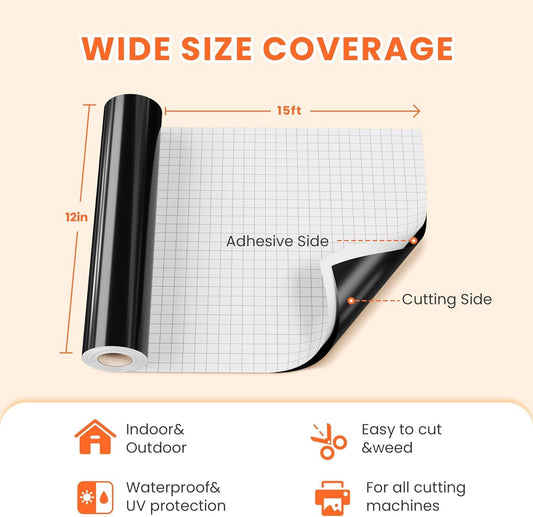 カッティングシート 黒 Hisiu 光沢あり カッティングシール 約30.48 x457.2cm カッティング用シート コップ 車 防水耐候 室内室外
